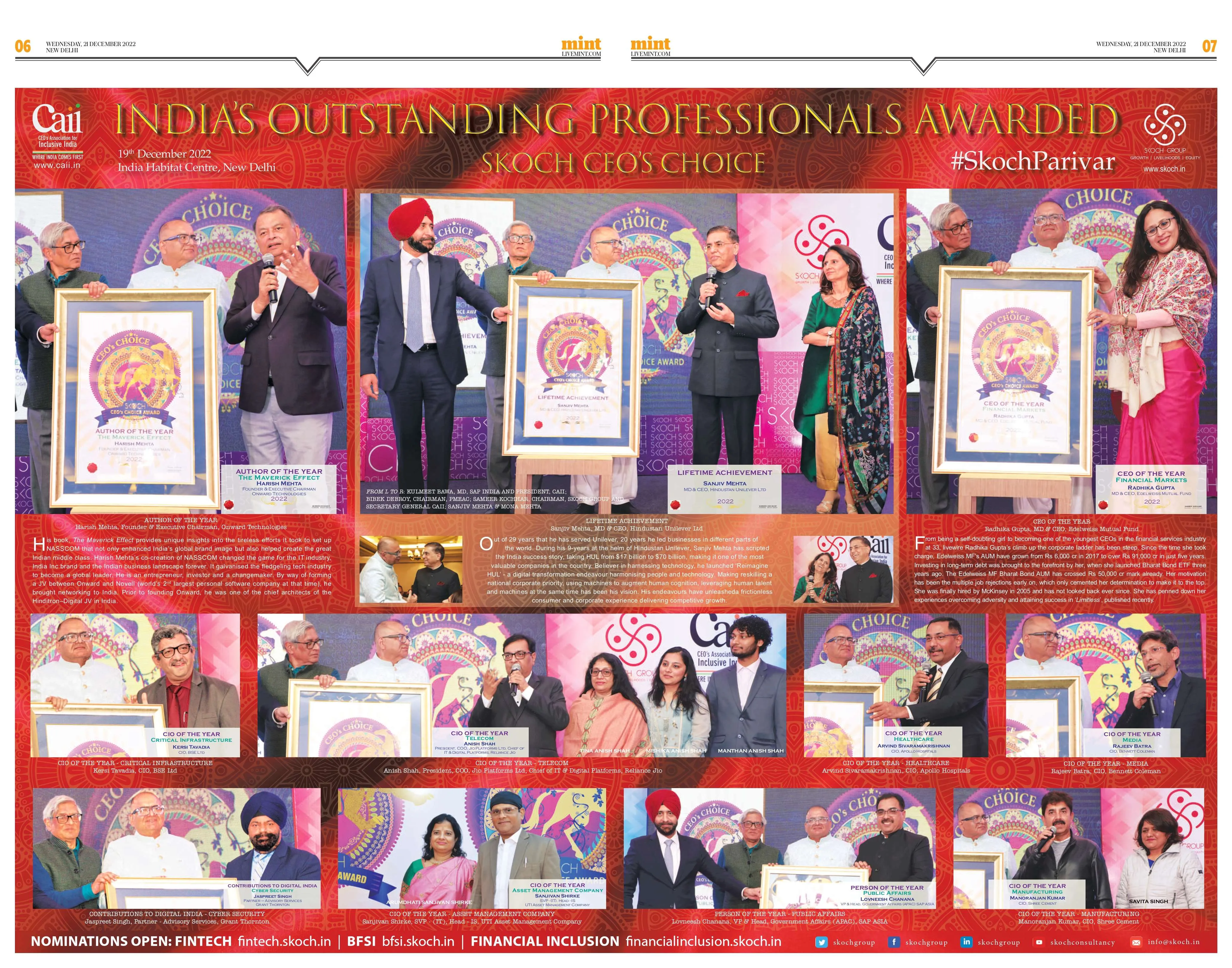 CEO’s Association for Inclusive India (CAII) and SKOCH Group present SKOCH CEO’s Choice Award. It is a vote of thanks – a token of gratitude from a nation to its professionals.